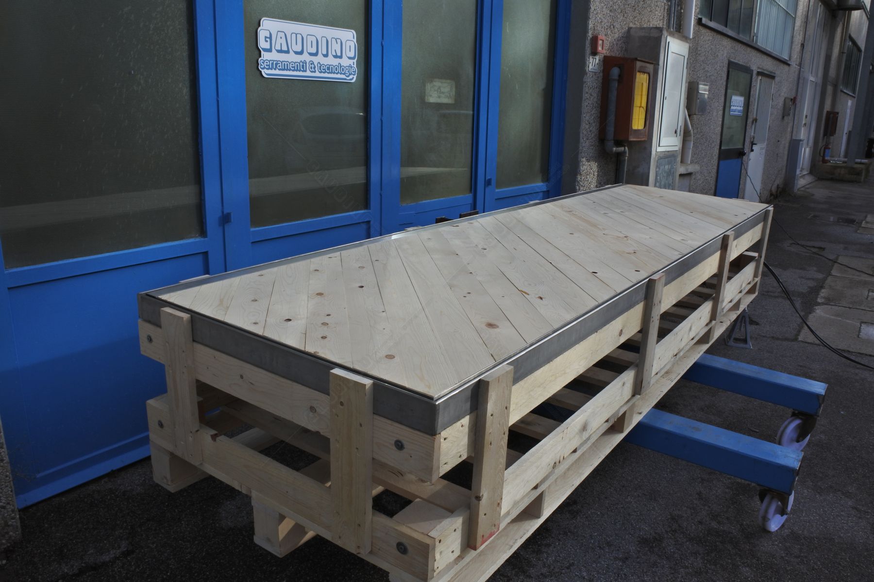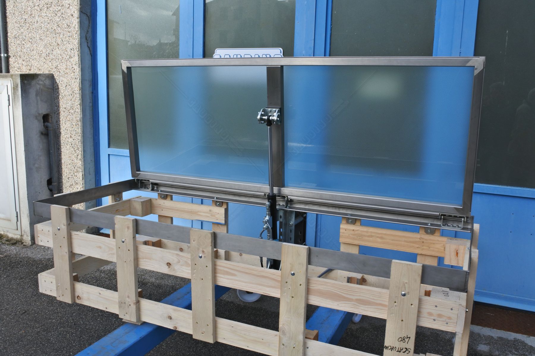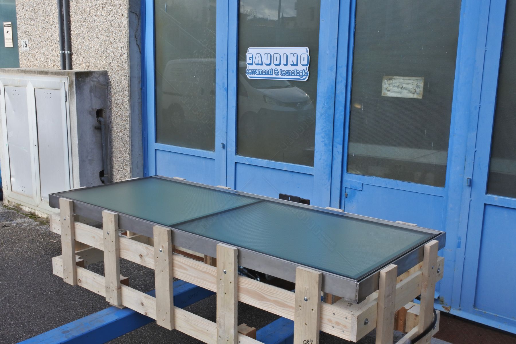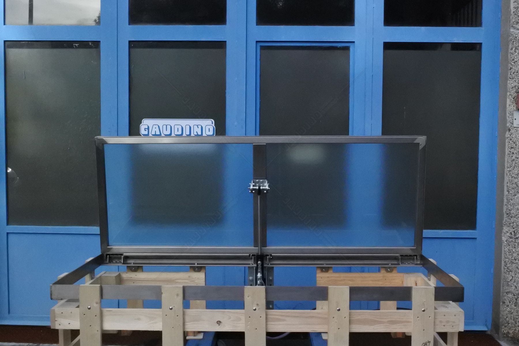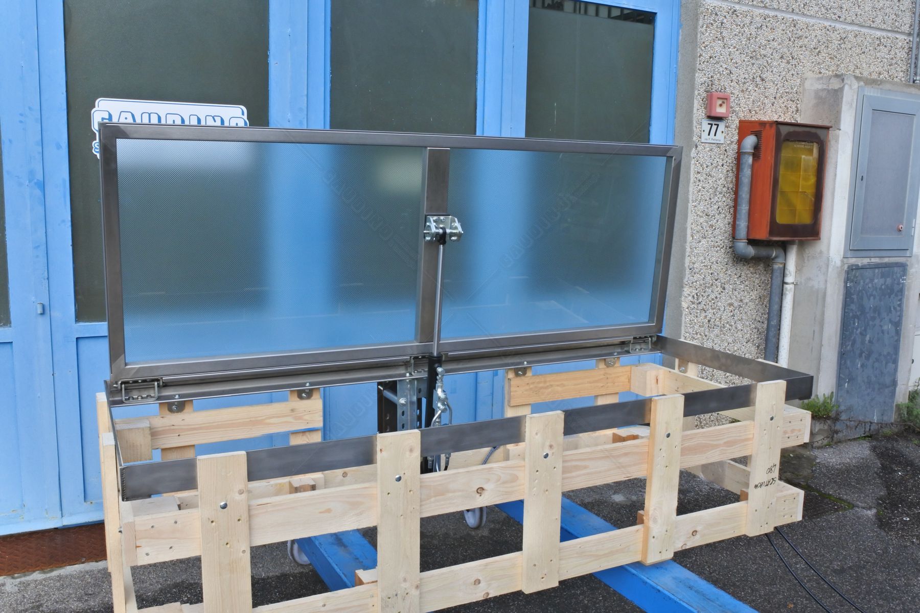 Botola vetrata motorizzata oleodinamica, luce foro 80×247cm